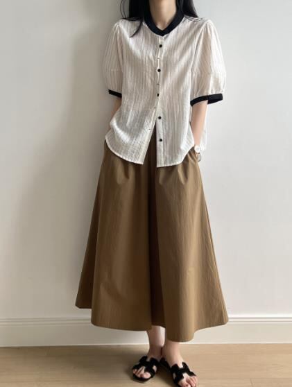 このブラウスは、2024年夏の新作アイテムで、軽やかな着心地が特徴です。ボーダーデザインがカジュアルでありながらも、上品な雰囲気を演出します。細部までこだわったデザインで、着るだけでおしゃれ度がグンと上がります。